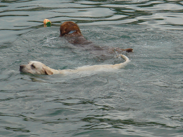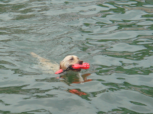 Winnie的主人因為常常帶他出去,也常去海邊玩. 體力是最好的.