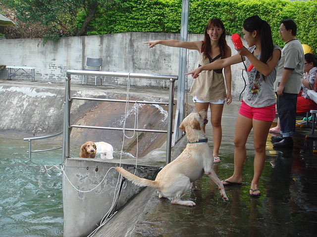 7/20 Betty的小孩生日-滿3歲了,好快! 想當初才幫Betty接生他的 Baby,轉眼間已經3年了,Betty的臉上也增添了一些歲月. 好不容易在7/19聚集Baby們的拔拔及麻咪,在汐止的愛狗樂園,讓他們一起游泳及玩樂.我們也在餐廳與他們一起同樂. 看到他們快樂的玩耍. 當他們的主人也是非常的滿足.