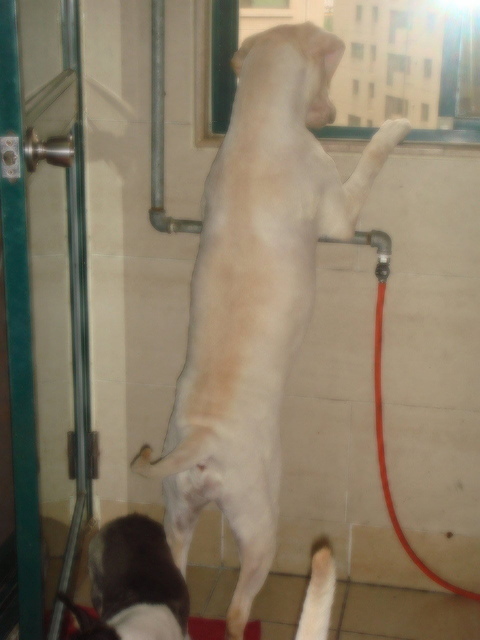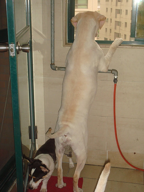 喔!我們家是拉布拉多ㄋㄟ! 不要誤會喔!黃金的毛很長, 拉拉是短毛的.