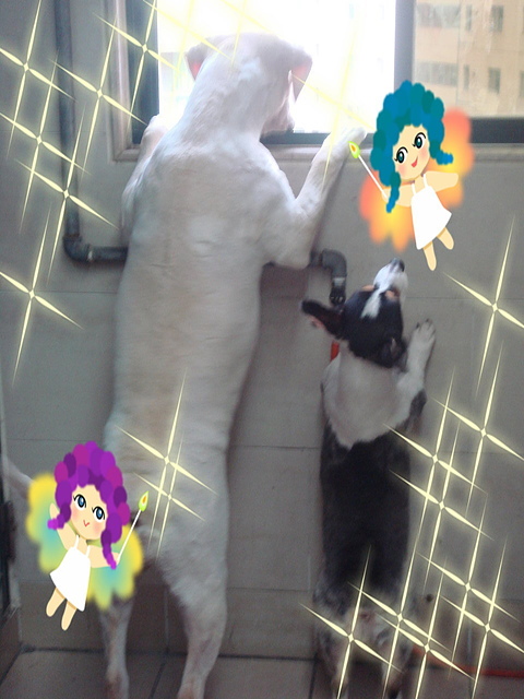 Nini: 姊姊!趁這個罰站的時候,我跟你說喔!這裡有好多狗狗在玩喔!