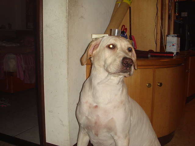 3. 哈…好好笑…連眼睛都遮住了,他還乖乖的頂…真可愛