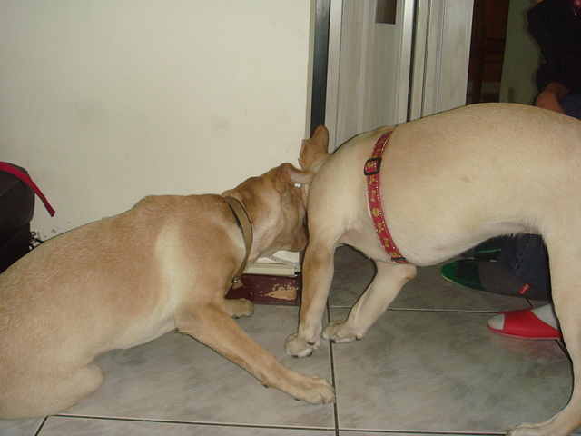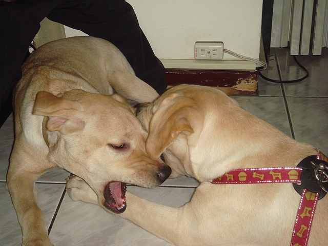 沒想到,Yummy還認的我們及兩隻狗, 玩的不亦樂乎,也與Nini一起互相咬著玩,好興奮喔!心跳好快喔!Nini比較兇, 都會發出聲音.因為他小時後是6隻中最兇的,我們待了1個多小時,也謝謝駱先生及駱太太的款待.我也將一些照片放入.